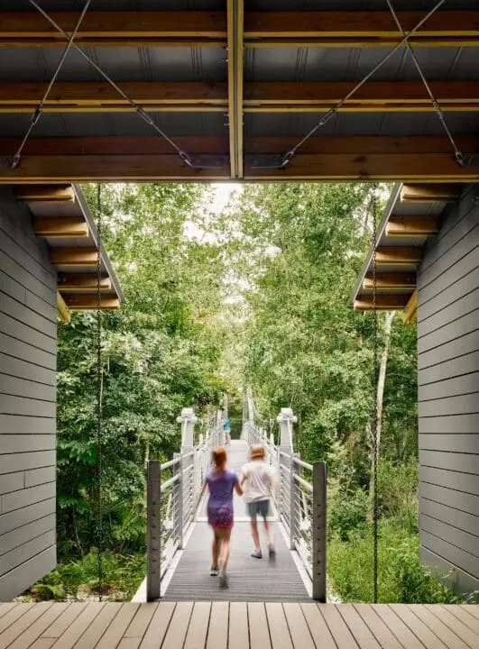 The Marine Education Center serves as the social and cultural meeting ground for the University of Southern Mississippi, the City of Ocean Springs, and the surrounding coastal region. The campus is a living laboratory, allowing visitors of all ages and backgrounds to explore its ecosystems. Outdoor classrooms, laboratories, administration offices, assembly spaces, exhibition areas, and a pedestrian suspension bridge support opportunities for research in environmental education, ecology, habitat, and coastal resilience.