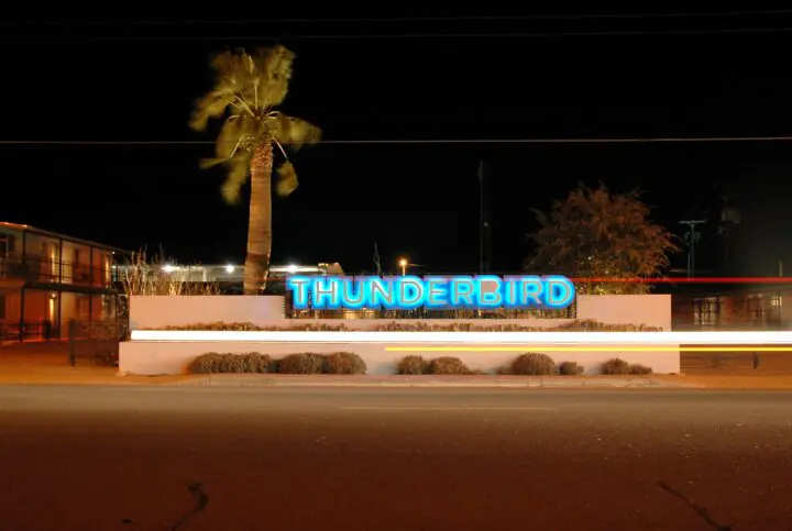 A haven for “culture tourists” in the west Texas town of Marfa, the Thunderbird Hotel juxtaposes contemporary design with Western touches. Built in 1959 as a classic horseshoe-shaped, single-story roadside motel, the 24-room structure was gutted and rebuilt to reflect a modern, minimalist aesthetic. Each room opens onto the vine-covered breezeway that surrounds the courtyard. Low stucco walls and a live ocotillo fence create a private oasis around the pool, which reflects the vast sky above. Stands of native plants and cacti anchor the hotel in its environment, and a latticework of salvaged oil-field piping shades the breezeways and poolside lounge with orange honeysuckle vines. An outdoor lounge with a fireplace for cold desert nights completes the complex.