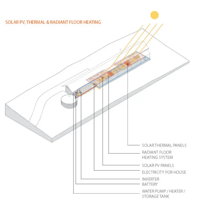Due to difficult access to The Prow, the steel structure was fabricated in San Antonio, transported as components to west Texas and bolted together on-site. The use of both pre-fabricated and site-built components integrated with passive and active energy systems for this off-grid residence make the Prow a unique project.