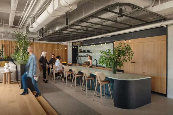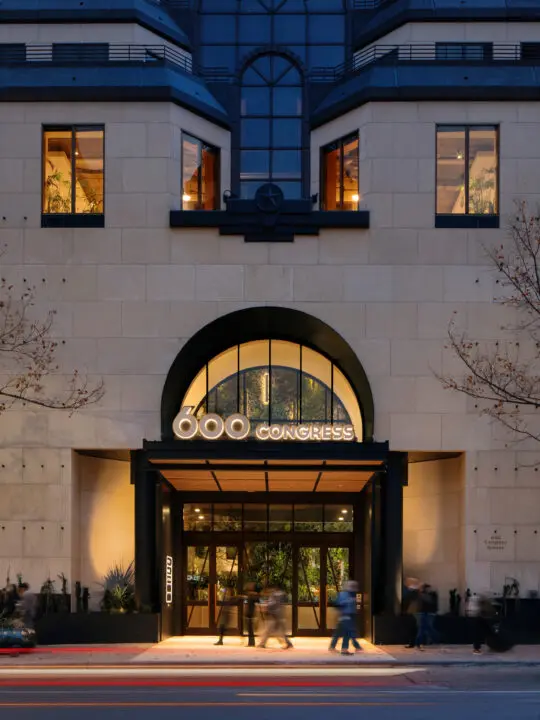 Located at the intersection of Austin’s two most prominent streets, 6th and Congress, this 32-story office building has been reimagined to transform an underutilized workplace into an engaging, social environment that moves beyond the traditional office model. Known as the Lowyard and Highyard, the renovated lobby and amenity floor were transformed into modern, multifunctional spaces, demonstrating how thoughtful design intervention can revitalize existing structures while preserving their historic character and architectural identity.
