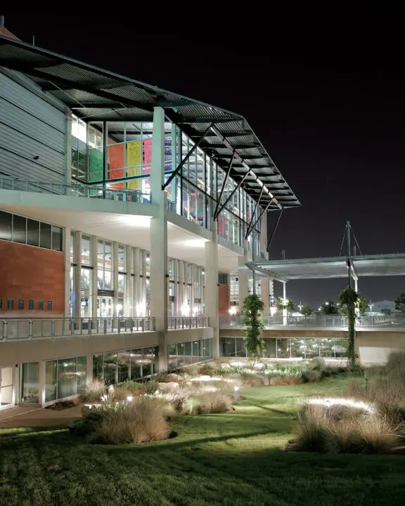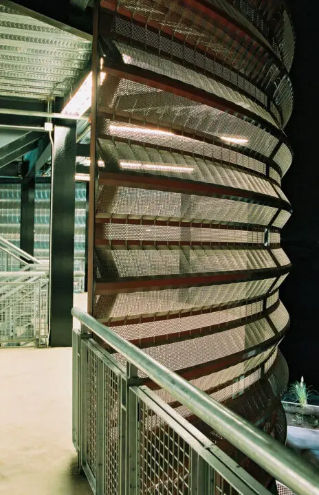 Inspired by the outdoor fiestas and culture of South Texas, the scale of this 18,700-seat sports arena for the NBA Champion San Antonio Spurs was reduced through a series of tall porches, generous loggias and broad overhangs. Circulation was pulled to the outside, culminating in corner stairs wrapped in perforated-metal, sun-screened silos.