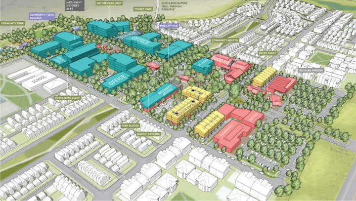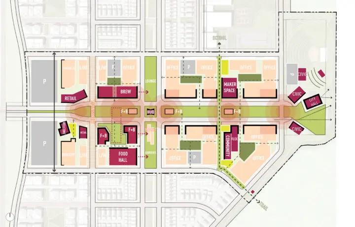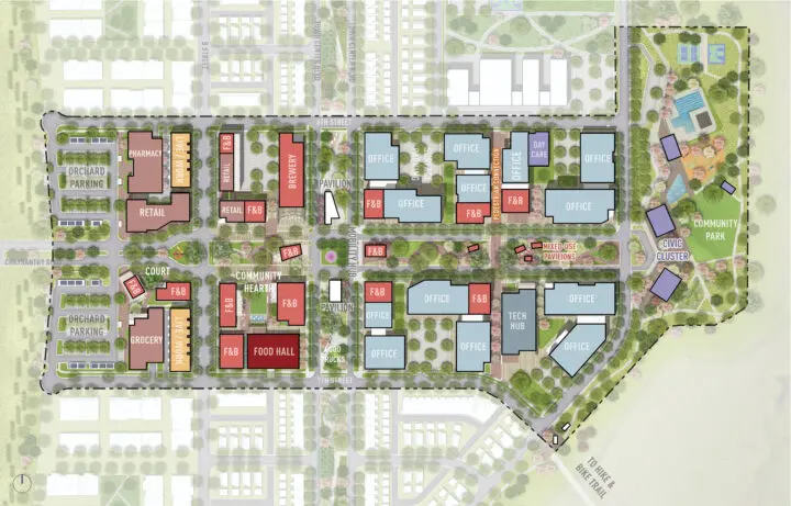Owner and developer Somers West is creating a sustainable community in north central California—where work, school, amenities, entertainment, and recreational areas are within walking distance or a short ride via EV shuttle or e-bike. Located just outside Sacramento with sweeping views to the Sierra Nevada Mountains, Braden’s Town Center is a 43-acre mixed-use village that models walkable, low-impact living. The Town Center serves as an urban focal point for a dense neighborhood of 8,000 residences and includes over one million square feet of new mixed-use development.