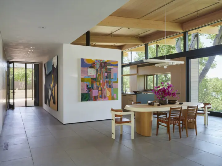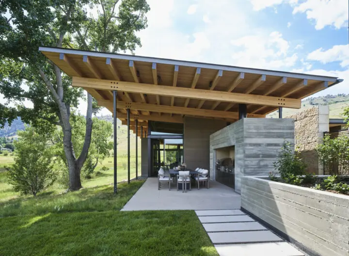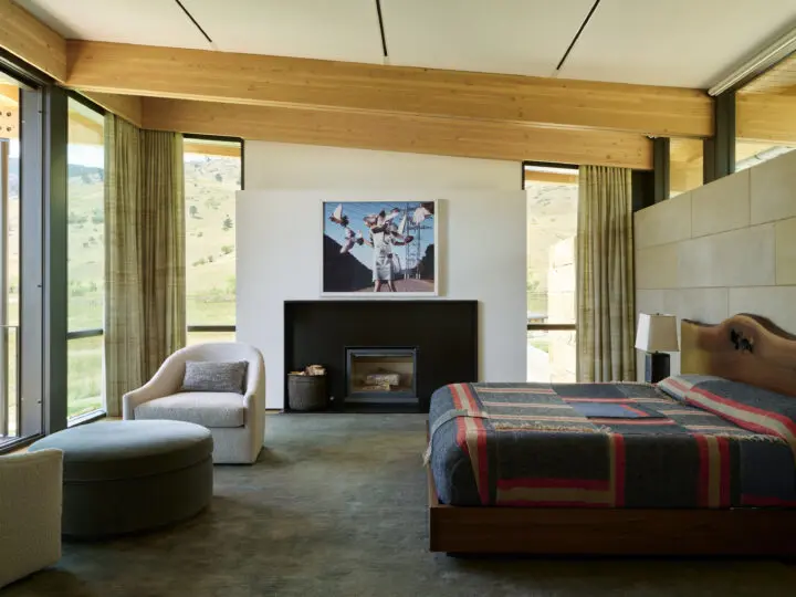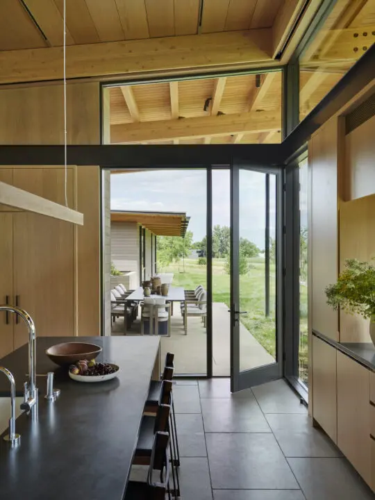 Monumental floor-to ceiling windows bring nature inside, and the house is tailored to celebrate each unique connection with the landscape. With both intimate courtyards and open meadows, a variety of outdoor living spaces engage the outdoors.