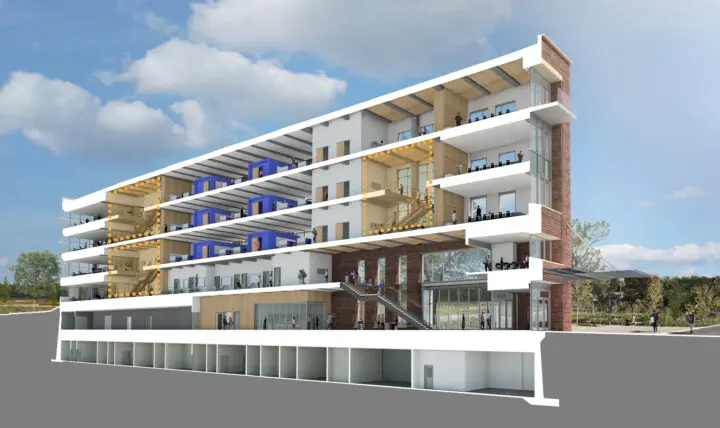 An innovative new model for research facilities, EBB challenges the silos of traditional laboratory design by creating a system of highly-adaptable, open lab neighborhoods organized around research themes instead of disciplines. The design leverages connections to the landscape, daylight, and views to encourage collaboration. EBB’s open lab structure facilitates an interactive lab experience through transparency and ease of collaboration. Breakrooms and restrooms bookend open lab neighborhoods on alternating floors to encourage vertical circulation.