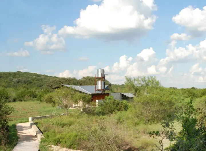 The Government Canyon Visitor Center floats in a field of native grasses and oaks at the mouth of the canyon, forming a gateway to the 8,600-acre Government Canyon State Natural Area. Located in the Edwards Aquifer recharge zone, the building demonstrates sustainable water use practices by conserving water, collecting rainwater, minimizing run-off and contaminants, and reducing ground water use. The canyon’s rich ranching history is expressed in the simple exposed steel pipe structure. The program included an exhibit hall, Texas State Park store, classrooms, offices, screened pavilion, amphitheatre, and trails.