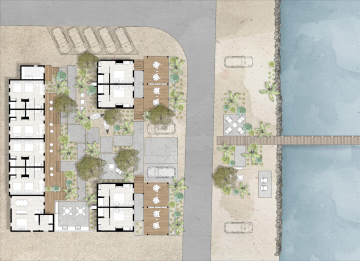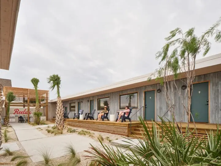 When the Reel ‘em Inn clients first approached Lake Flato, they joked they had “bought a pier that came with a motel.” Sited on the water’s edge of the Aransas Bay, adjacent to a 1,000-foot pier, the project transforms a dilapidated 1950s motor court motel into a lodging experience that is the first of its kind in Rockport, Texas. Designed to be an elevated yet casual retreat for visitors and families, the motel features a contemporary coastal aesthetic.