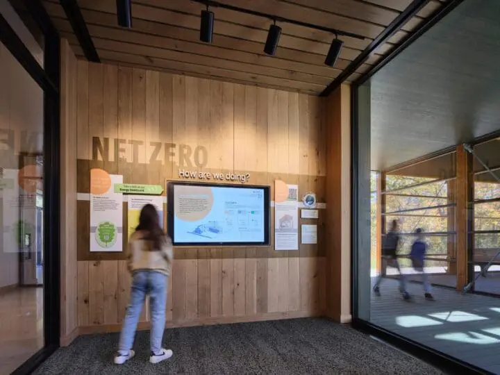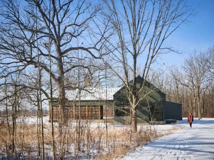 The Ryerson Woods Conservation Area supports some of Illinois’ most pristine woodlands and several threatened and endangered species. The story of preservation of this fragile ecosystem is told by the building through active demonstration of water conservation, energy production, and bird-friendly, resilient material selection. A real-time energy dashboard shows how the building is generating and using energy in real-time while interior and exterior signage showcases the impact of environmental stewardship and energy-efficient decisions. The building also serves as a trailhead for exploring the conservation area.