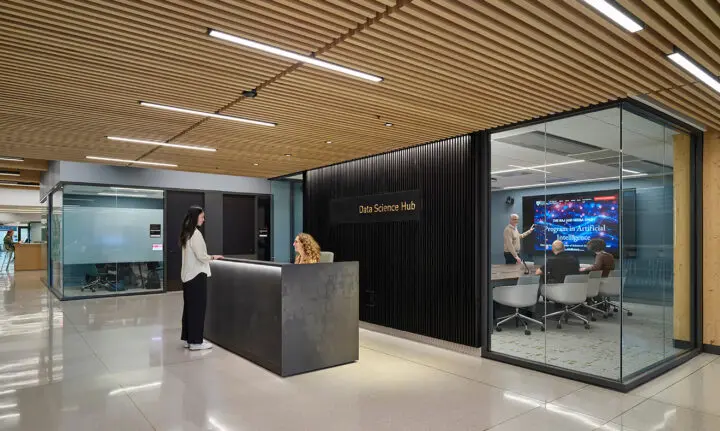 For some, the terms data science and artificial intelligence conjure images of people focused on computer screens and manipulating lines of code, but for [Amy Gutmann Hall], the architects Lake Flato with KSS envisioned an environment where people would instead engage with each other.Joann Gonchar