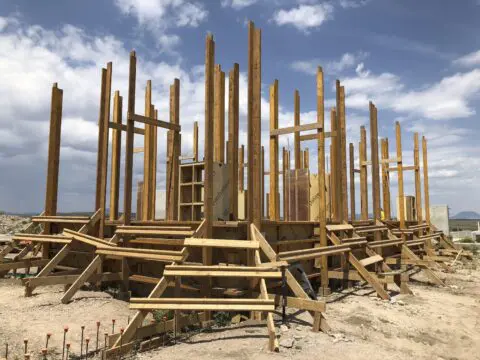 The courtyard is shaded by the dappled light of native mesquite trees with a small fount of collected rainwater that completes the oasis-like quality of this key outdoor room. To keep the house cool during the hot summers and warm in the winters, the house is built of two-foot-thick walls of rammed earth.