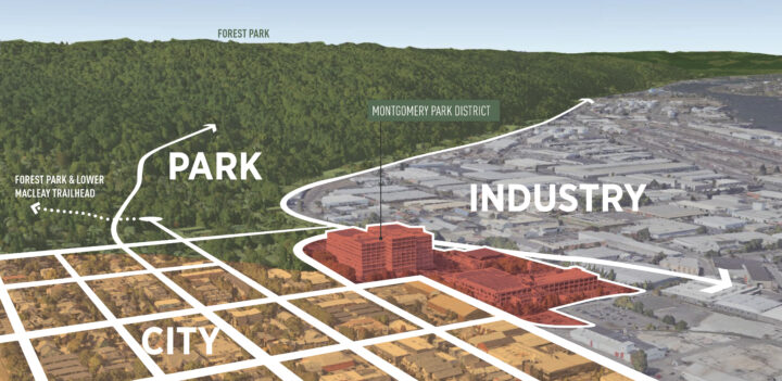 The Montgomery Park Master Plan envisions a generational opportunity to reimagine an iconic landmark surrounded by surface parking into a vibrant, diverse and highly-accessible mixed-use district that serves as a new gateway to one of the area’s most treasured natural resources in Forest Park. As a renewed home for innovation, creativity and community gathering, Montgomery park is poised to become a destination district that exemplifies sustainable placemaking rooted in Portland’s renowned urban outdoor lifestyle.Client/Developer